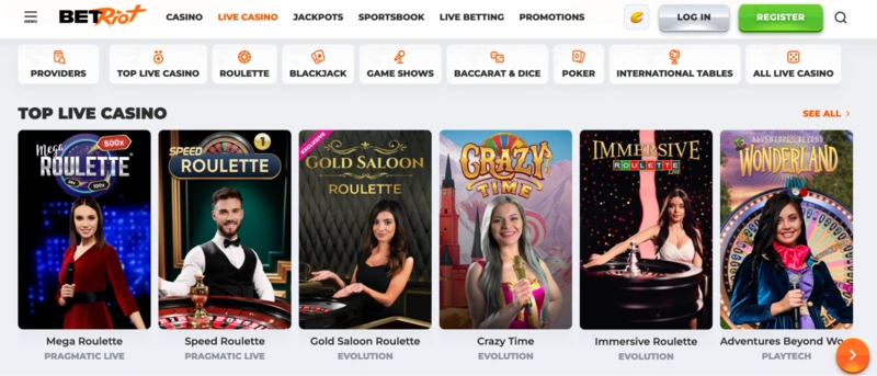 Al BetRiot Casino, portiamo l'atmosfera elettrizzante di un casinò tradizionale direttamente sul tuo schermo grazie ai nostri giochi con croupier dal vivo. Abbiamo collaborato con i migliori del settore per garantire un'esperienza di gioco live di alta qualità, dove puoi interagire in tempo reale con croupier professionisti e altri giocatori.